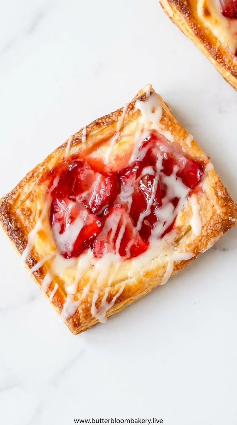 A buttery, flaky Strawberry Danish layered with a smooth cream cheese filling that whispers of summer berries and comforting mornings. Perfect for a sweet breakfast or an afternoon snack, this pastry brings a sigh of contentment with every bite.